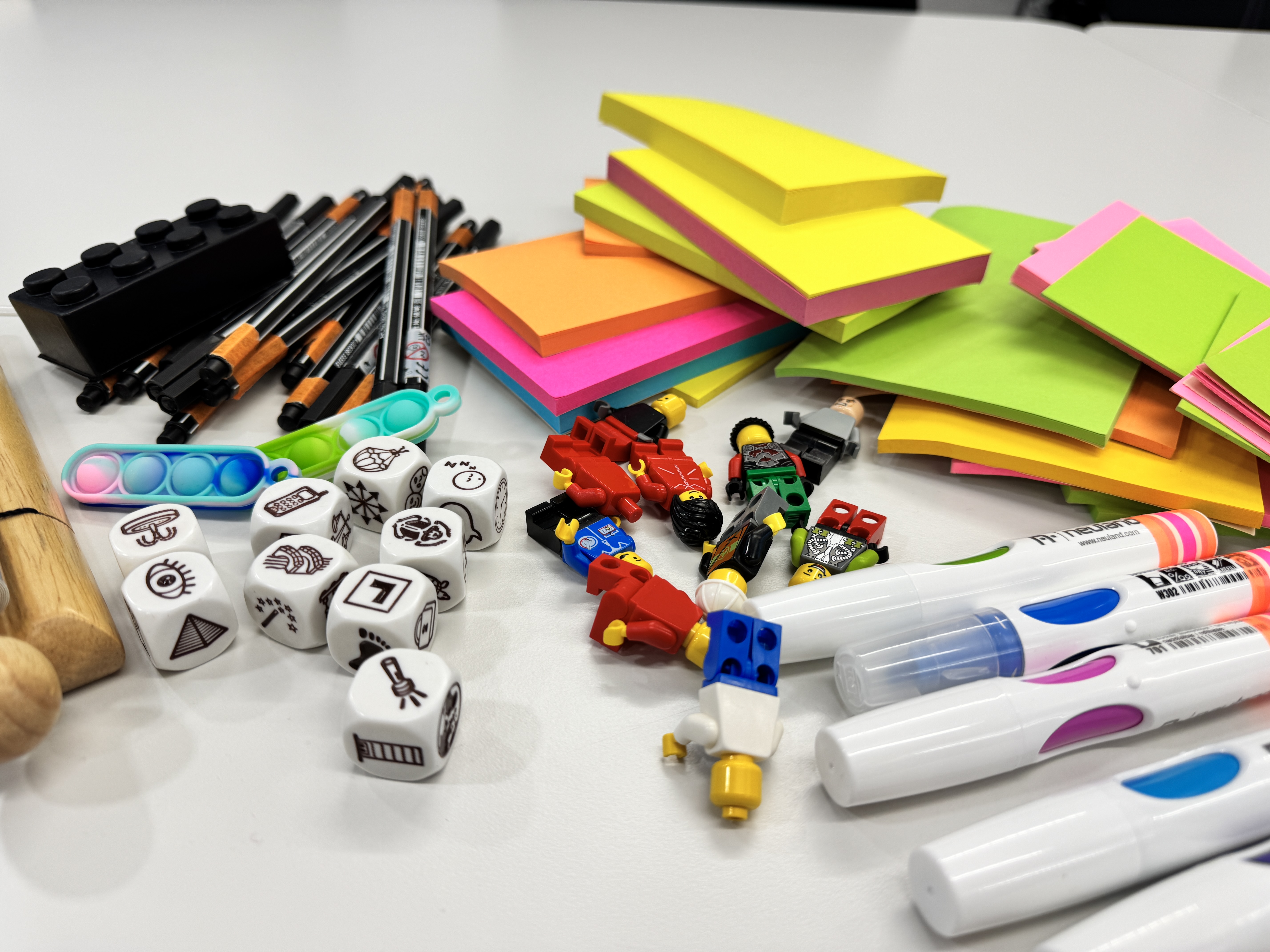 Meine Workshops sind häufig bunt – neben klassischen Methoden nutze ich gerne auch kreative Elemente, um neue (Denk-)Wege oder Innovation zu ermöglichen. Ich erzeuge greifbare Ergebnisse durch greifbare Inhalte und Gestaltung. So kommen sowohl Post-It Enthusiasten, als auch kreative Köpfe zum Zuge.